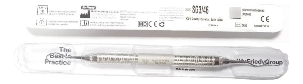 Diseñadas específicamente para realizar un raspado profundo, alisado radicular y desbridamiento periodontal, las curetas Gracey SG 3/4 de Hu-Friedy son herramientas esenciales para la higiene dental profesional. Con un diseño de doble extremo, estas curetas permiten una mayor versatilidad y eficiencia en el tratamiento periodontal. El ángulo de inclinación de las hojas proporciona una posición de trabajo adecuada para la superficie dentaria, asegurando que solo se utilice el borde cortante inferior para una mayor precisión y seguridad.