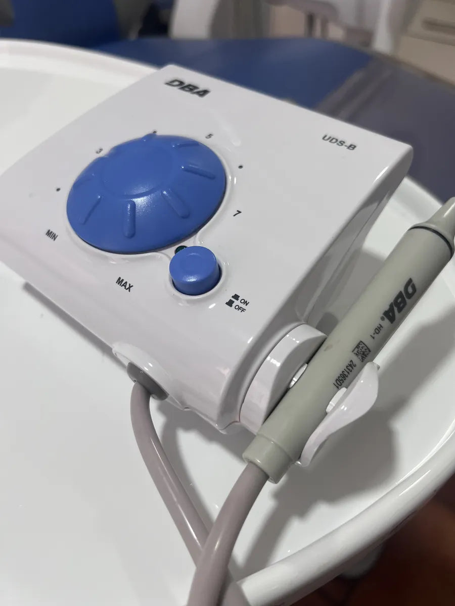 Llave de torque. - Manguera de agua. - Anillo decorativo de la pieza de mano. - Manual de instrucciones. Características: 2 funciones: escareador, periodoncia. El armazon de la pieza de mano es de aleación de Titanio que asegura su función y larga durabilidad. Ensamblado con piezo-cerámica, por lo cual genera muy poco calor. Certificado por FDA y NSF. El cable esta fabricado de gel de silica, suave y durable. Incluye 5 puntas: G1(2), G2, G4, P1. Las puntas estan hechas de un material especial que permite limpiar los dientes de manera fácil y rápida sin dañar el esmalte ni la encía. Control Digital de frecuencia que permite que el escareador siempre trabaje en la mejor frecuencia y más establemente. Pequeño, ligero y fácil de usar.
