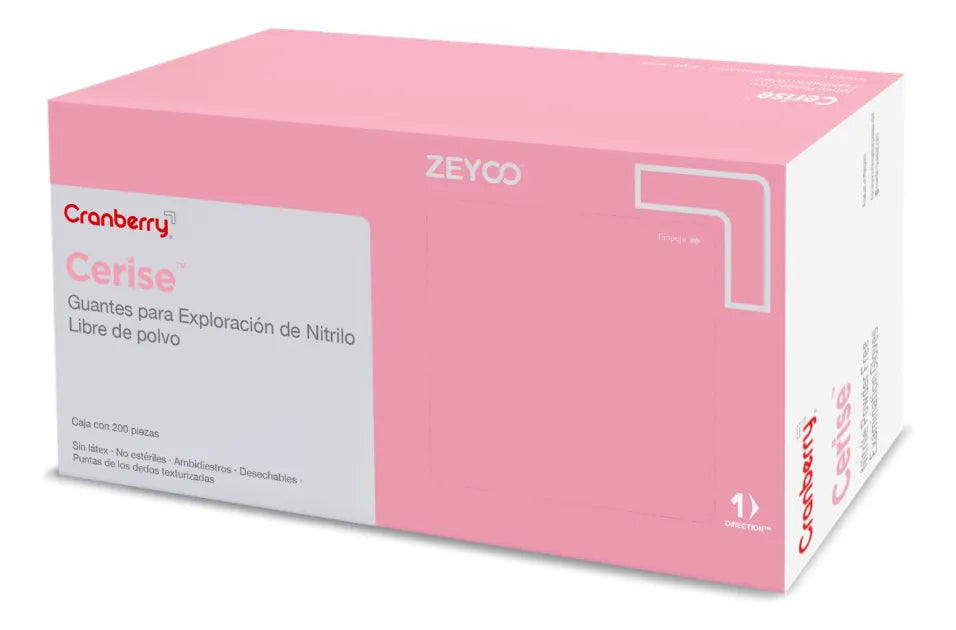 Guantes de Nitrilo Rosa Cerise Cranberry – Sin Polvo Los Guantes de Nitrilo Cerise Cranberry están diseñados para ofrecer alta resistencia, excelente sensibilidad al tacto y máxima comodidad, siendo ideales para exploración médica, odontología, estética, laboratorios y uso profesional. Fabricados en nitrilo libre de polvo, reducen el riesgo de alergias y brindan un ajuste seguro. Su color rosa aporta una imagen fresca y profesional sin comprometer el desempeño técnico. Caracteristicas Principales: - Material: Nitrilo de alta calidad - Libre de polvo - Texturizado en las puntas de los dedos para mejor sujeción - Excelente resistencia a la tensión - No sacrifica la sensibilidad al tacto - Uso desechable - Cómodos para jornadas prolongadas Presentación: - Caja con 200 guantes - Tallas disponibles: XCH, CH y M (Selecciona la talla correcta antes de comprar) Especificaciones Técnicas: - Color: Rosa - Grosor mínimo: 0.05 mm - Marca: Cranberry - Modelo: Cerise - Tipo: Guante para exploración Uso Recomendado: - Consultorios médicos - Clínicas dentales - Estéticas y spas - Laboratorios - Limpieza y manipulación general