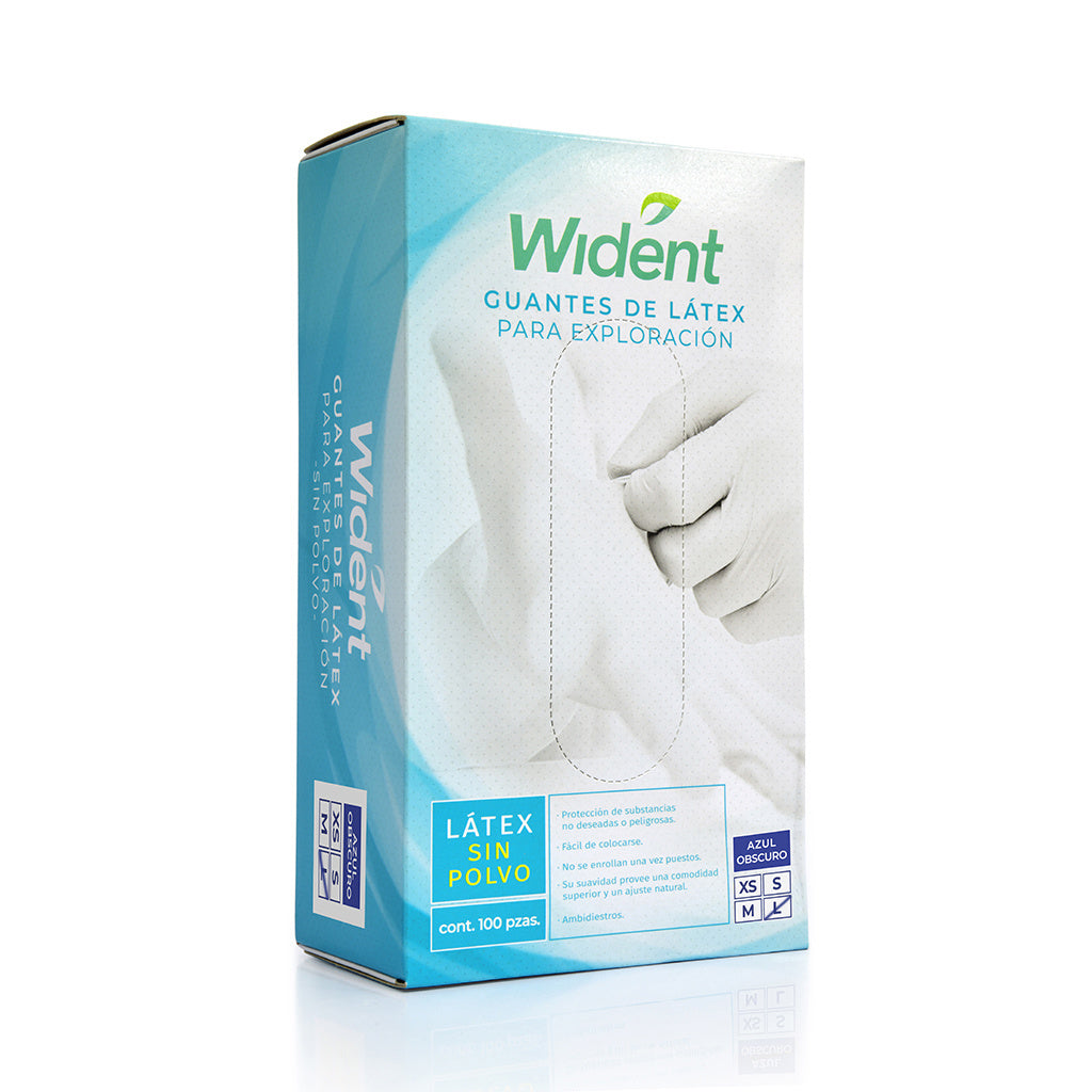 GUANTES WIDENT LÁTEX SIN POLVO TALLA L AZUL OBSCURO – CAJA C/100 Guantes de látex color azul oscuro en talla grande (L), sin polvo, diseñados para ofrecer un ajuste anatómico, sensibilidad táctil superior y precisión en procedimientos clínicos o de laboratorio.